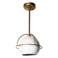 Perfect for 12V low-voltage environments like RVs and trailers, this 16.5" pendant features champagne gold iron base/rod, a white globe shade with champagne gold metal ring frame, and integrated 3500K LED (4.5W) emitting soft light, blending retro elegance with functional design.