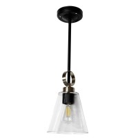 Designed for 12V low-voltage environments like RVs and trailers, this 19" pendant features a matte black iron base/rod, a brushed nickel-plated metal ring accent, a conical clear acrylic shade, and a replaceable Dream Lighting LED Edison bulb, blending industrial retro charm with refined details.